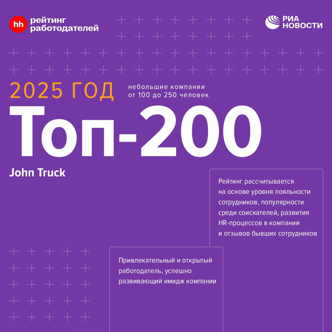 Этот выдающийся результат — прямое доказательство того, что сила нашей команды является главным двигателем John Truck! Каждое из этих достижений — награда нашему коллективу за высочайший профессионализм, невероятную сплочённость и ежедневное стремление к лучшему.